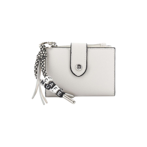 Geldbörse mit Reißverschluss in Lederoptik, mit Reißverschlussanhänger in Elfenbeinfarbe.