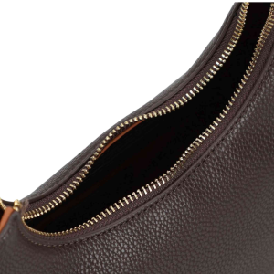 Soft nappa shoulder bag with a grained effect and high-frequency personalization.