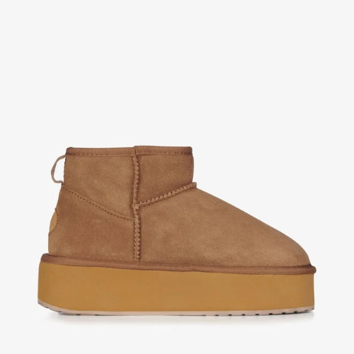El Stinger Micro Flatform de EMU Australia es una bota de piel de oveja australiana resistente al agua, con un diseño de doble cara que combina el estilo urbano más actual con una silueta baja al tobillo y moderna.