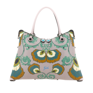 Linea Los Roques - Shopping "THAMARA" in pelle di vitello martellato con stampa peonia