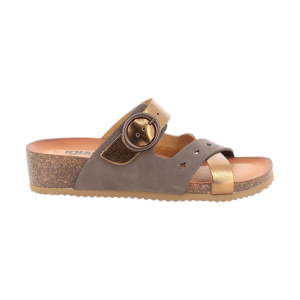 Ciabattine donna con suola in sughero e plantare in pelle. Questi sandali bassi, grazie alla loro suola in sughero, combinano uno stile naturale e organico con una praticità che li rende ideali per il giorno. Il leggero dislivello tra punta e tacco favorisce un corretto appoggio del piede riducendo l'affaticamento. E' possibile una regolazione per aumentarne la vestibilità.