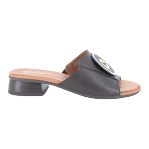 Sandali ciabatta con tacco dalle linee iperfemminili e di design. Potrai abbinarli con facilità sia ad outfit eleganti che più disinvolti. La spiccata personalità di questi sandali viene esaltata dalle pelli utilizzate e dall'accessorio importante. Il piede appoggia su un comodo tacco che dona slancio e sostegno alla gamba. Il sottopiede è rivestito in pelle per agevolare la traspirazione.